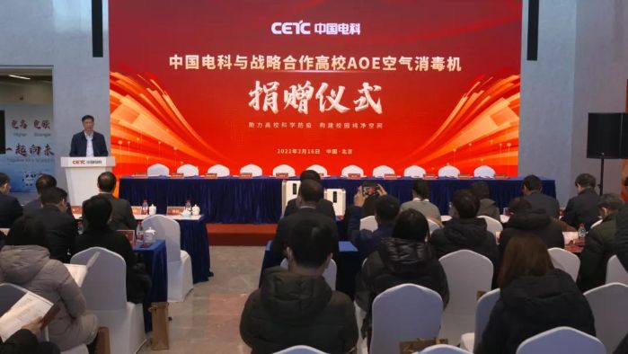 2月16日,中国电科在京举行“助力高校科学防疫 构建校园纯净空间”——AOE空气消毒机捐赠仪式,向清华大学、北京大学、北京航空航天大学、北京邮电大学、北京理工大学等全国十所高校捐赠了最新研制的空气消毒机,助力校园疫情防控。中国电科副总经理何松,国资委、教育部、工信部及上述高校相关领导出席活动。